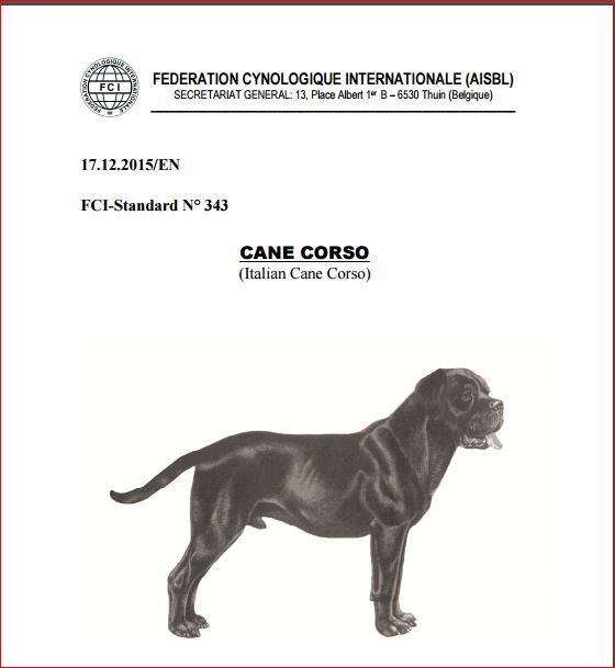 De rasstandaard van de Cane Corso wordt opgemaakt door het land van oorsprong, Italië. Deze wordt daarna goed gekeurd door de FCI. Dit is een overkoepelend orgaan van alle kennelclubs die aangesloten zijn, bij deze instantie.